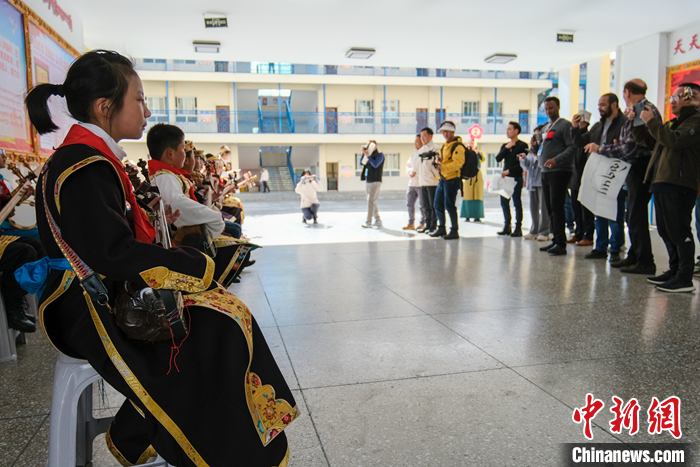 由尼泊爾、緬甸、菲律賓、莫桑比克、斐濟、委內(nèi)瑞拉、印度尼西亞、孟加拉國等多國駐華大使、公使,以及外籍專家、學(xué)者等組成的團隊18日在西藏自治區(qū)林芝市第二小學(xué)參觀訪問,現(xiàn)場聽孩子們彈奏扎念琴、體驗藏文書法等。