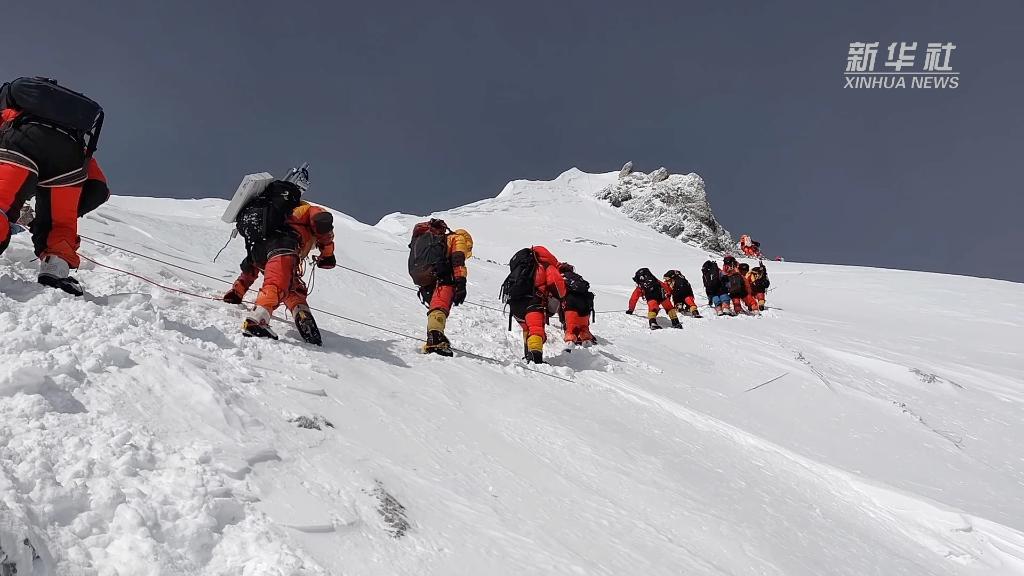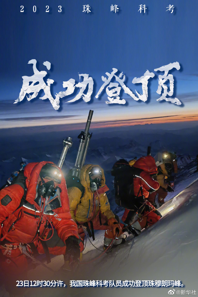 這是我國珠峰科考繼2022年之后,再次突破8000米以上海拔高度。當(dāng)日,科考隊(duì)員在珠峰峰頂利用科學(xué)儀器,采集珠峰峰頂?shù)难┍鶚悠罚糜诜治鰵夂颦h(huán)境指標(biāo)。