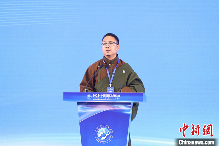 5月23日,“2023·中國西藏發(fā)展論壇”在北京舉行。中國藏學研究中心總干事鄭堆發(fā)言介紹了中共十八大以來,西藏傳統(tǒng)文化得到傳承、保護和發(fā)展的情況。 中新社記者 蔣啟明 攝