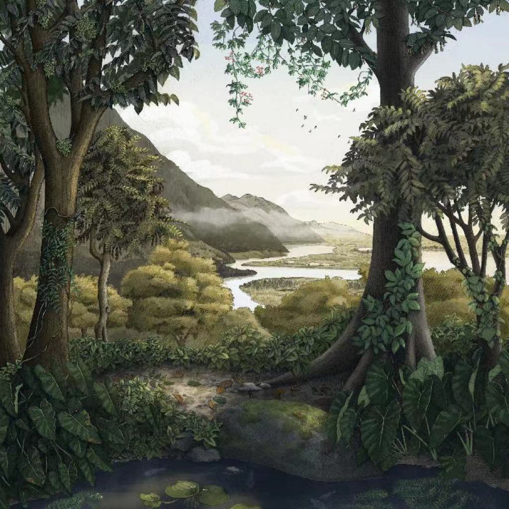 青藏高原部分地區(qū)生物群復(fù)原圖。(中國科學(xué)院西雙版納熱帶植物園供圖)