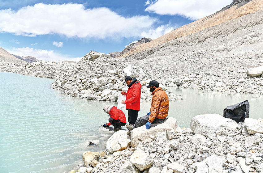 “我們沿著喜馬拉雅山脈做了很多工作,采集了2000多份樣品。”劉佳滿懷憧憬地說,“我們會從大本營出發(fā)努力接近海拔7000米區(qū)域,完成15個雪冰樣品和15個沙石樣品采集。希望通過一塊塊拼圖,努力還原青藏高原形成演化的‘大圖紙’?!?/p>