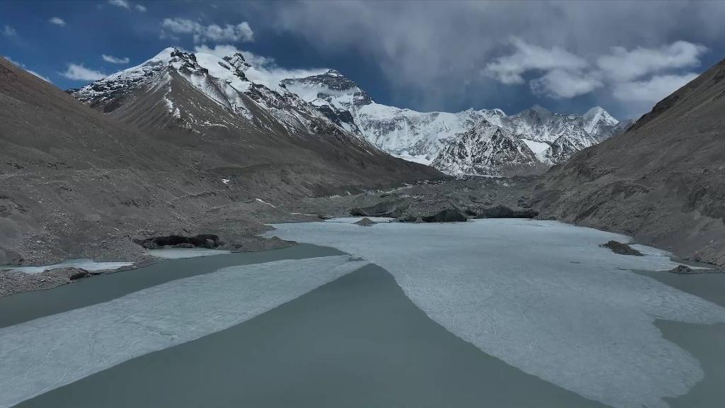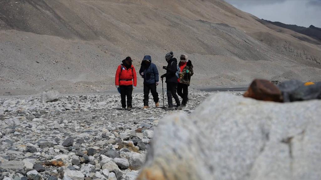 在海拔5200米的登山大本營附近的絨布河進(jìn)行完檢測后,科考人員一行計劃前往約三公里外的中絨布冰川末端的冰湖,采集冰川融水樣本并檢測水質(zhì)。