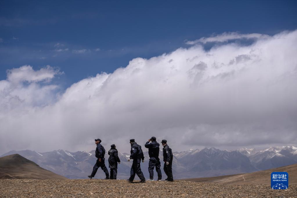 6月2日,在33號界樁處,護(hù)邊聯(lián)防隊(duì)隊(duì)員列隊(duì)準(zhǔn)備分頭巡邏。新華社記者 晉美多吉 攝