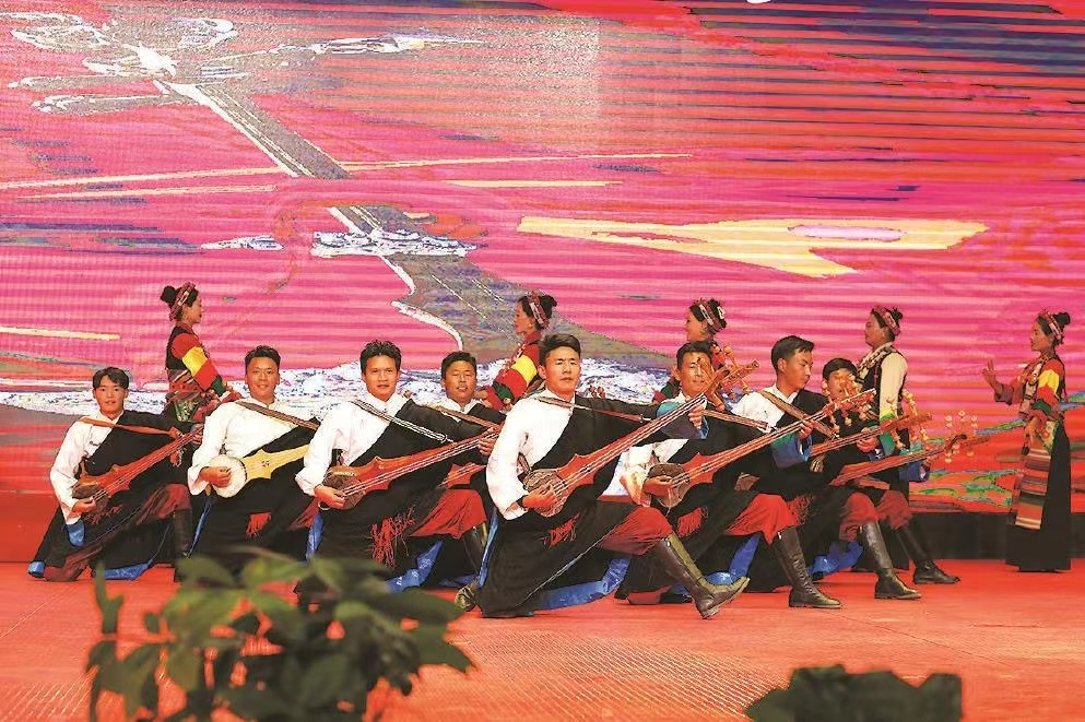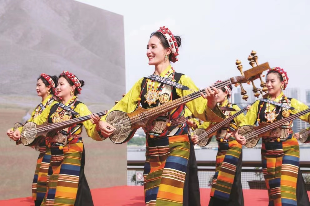 5日,由上海市援藏干部人才聯(lián)絡(luò)組拉孜小組、西藏日喀則市拉孜縣文化和旅游局主辦的“遇見|雅江情濱江意·滬藏文化交流”演出,走進(jìn)上海楊浦文化新地標(biāo)“YOUNG劇場”,悠揚(yáng)的扎念琴聲、時快時慢的“踢踏”舞聲、傳統(tǒng)藏族曲調(diào)和現(xiàn)場觀眾的歡笑聲、鼓掌聲,為初夏的繽紛申城再添一抹亮色。