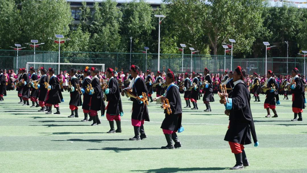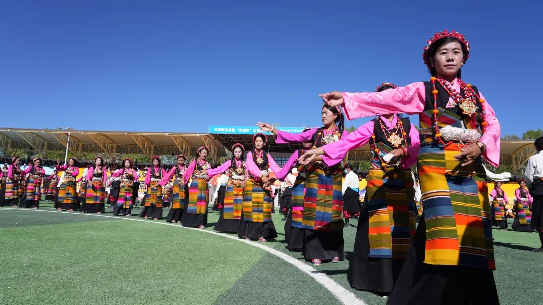 6月25日上午,主題為“相約珠峰·千人弦音”日喀則大型非遺歌舞展演在西藏自治區(qū)日喀則市上海體育場震撼上演?,F場共1000名參與者同時表演日喀則非遺民俗舞蹈。