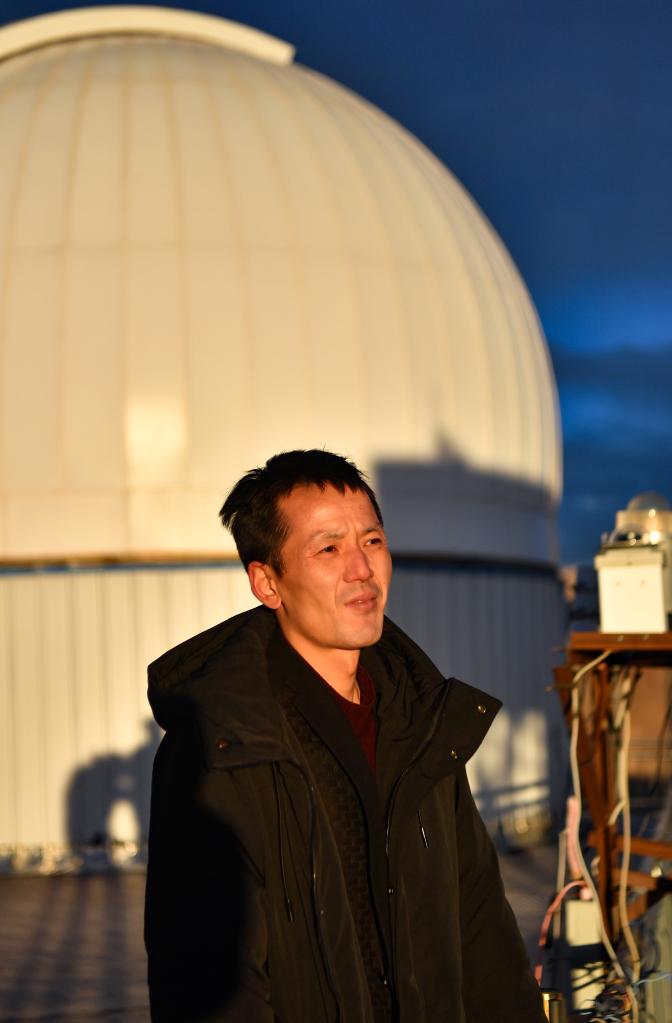 尤顯龍在阿里天文臺凝望遠(yuǎn)方(5月24日攝)。新華社記者 晉美多吉 攝