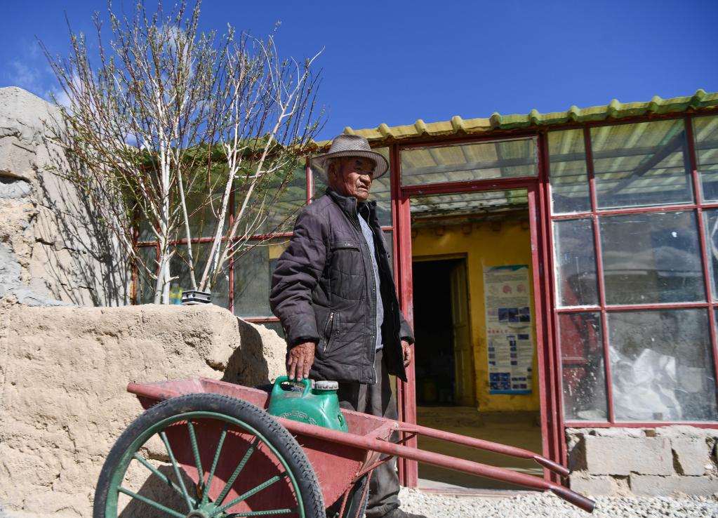 洛桑占堆從典角村“三代房”旁的水井打水回家(5月28日攝)。新華社記者 晉美多吉 攝