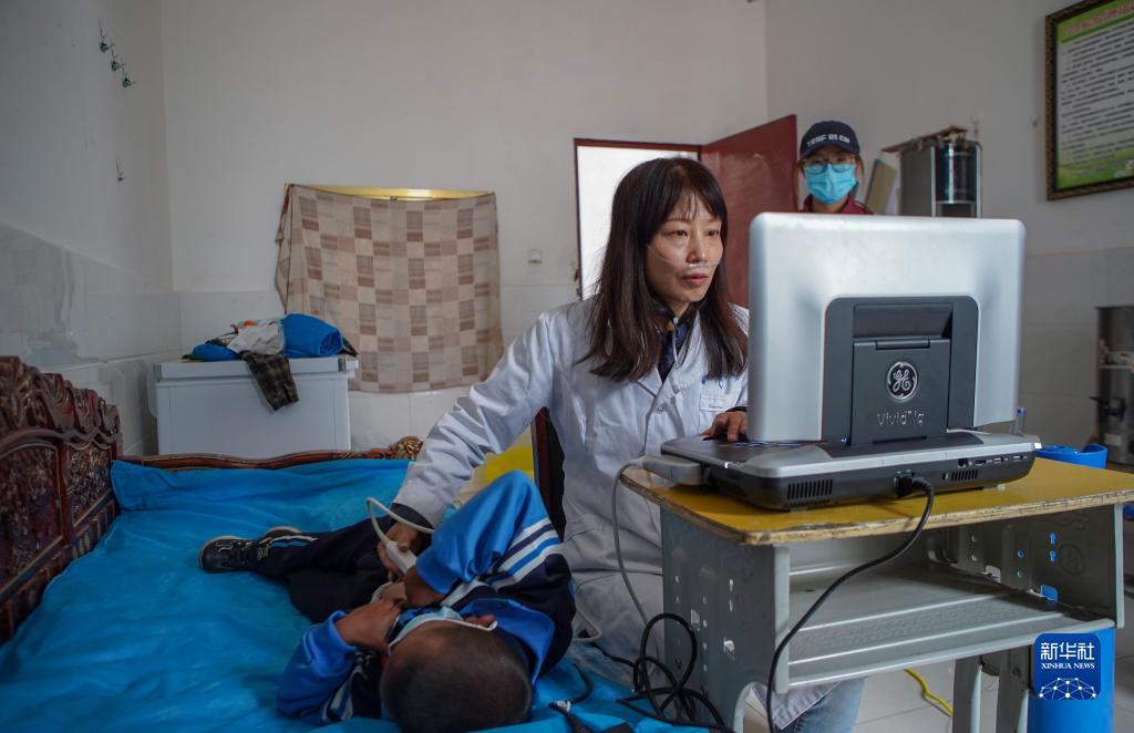 7月4日,“心佑工程”項目團隊醫(yī)生給疑似患兒做心臟彩超。新華社記者 邵澤東 攝