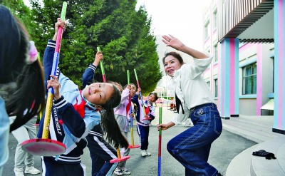 山南市第三小學(xué)的援藏教師甘夭娥帶領(lǐng)學(xué)生練習(xí)藏族傳統(tǒng)舞蹈“打阿嘎”。作為教育大省,湖南通過實(shí)施“山南湖南學(xué)校聯(lián)盟”工程,采取“一所學(xué)校包一個學(xué)科”的形式,把優(yōu)質(zhì)教育資源下沉到縣區(qū)和鄉(xiāng)村學(xué)校。攝影:辜鵬博(湖南日報(bào)攝影記者)