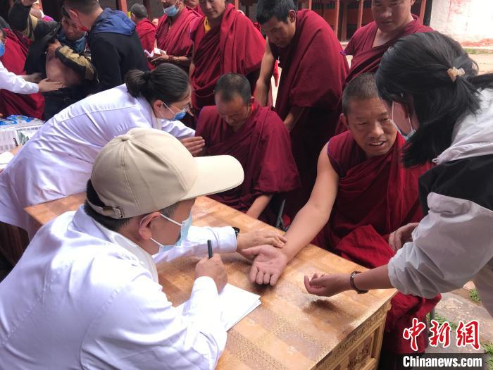 來(lái)自北京的10余位醫(yī)療專(zhuān)家11日走進(jìn)西藏昌都市邊壩縣邊壩寺,為近40名僧人開(kāi)展醫(yī)療公益活動(dòng)?;顒?dòng)現(xiàn)場(chǎng)還舉行了“同心·共鑄中國(guó)心”健康診室揭牌儀式。
