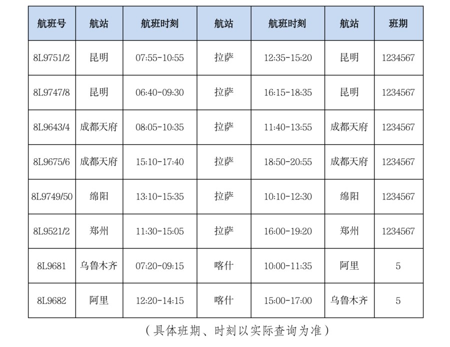 附:祥鵬航空進(jìn)出藏航線表