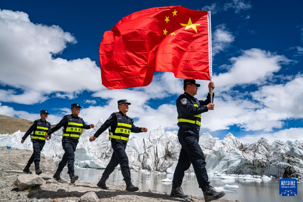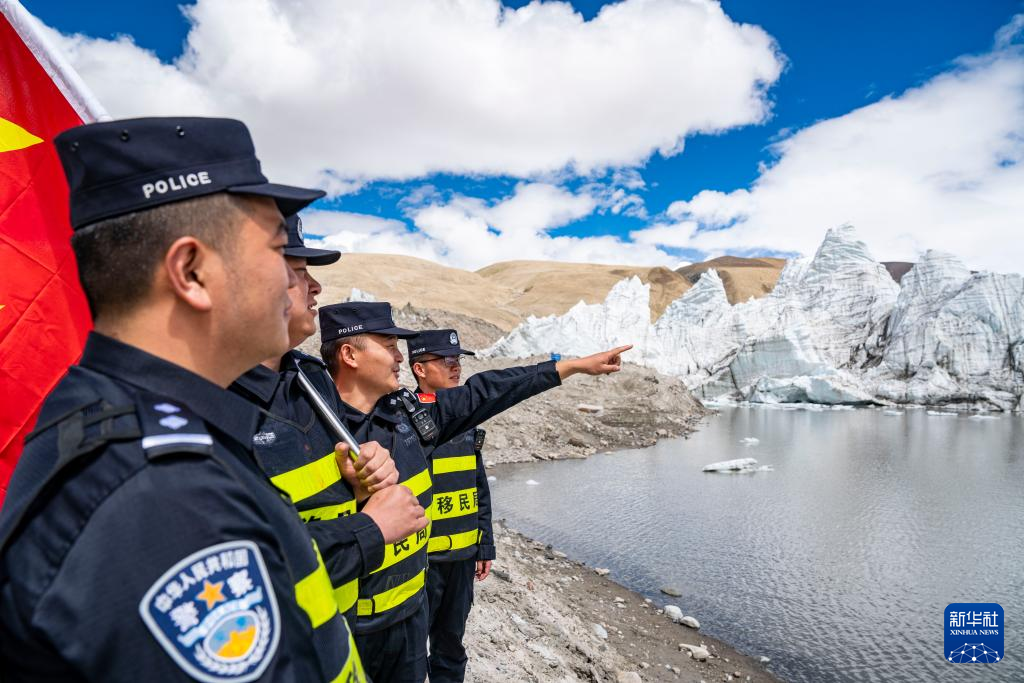 普瑪江塘邊境派出所的民警們在崗布冰川附近巡邏(7月4日攝)。新華社記者 孫非 攝