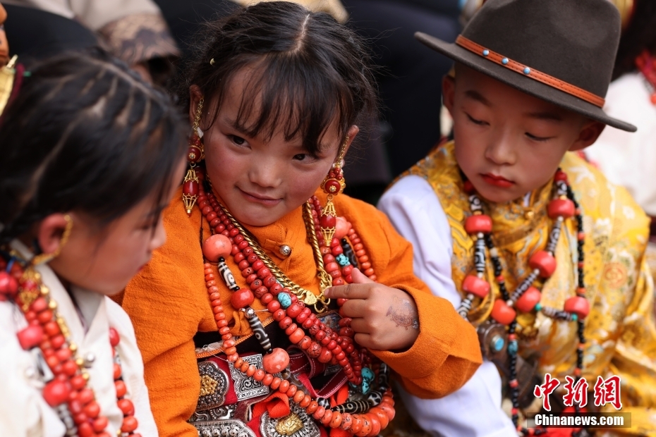 7月17日,西藏自治區(qū)昌都市貢覺縣,民眾身著極具特色的民族服裝服飾,載歌載舞出席當(dāng)?shù)氐奶厣椪够顒?dòng)。