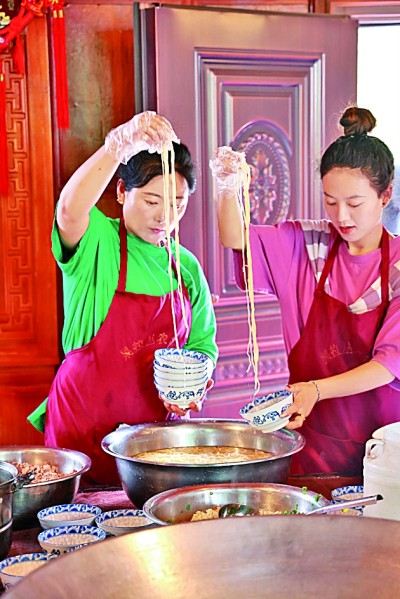 加加面是芒康鹽井的一種美食,顧名思義就是“不停地加”。圖為當?shù)匕傩罩谱骷蛹用妗9饷魅請笥浾?劉宇航攝