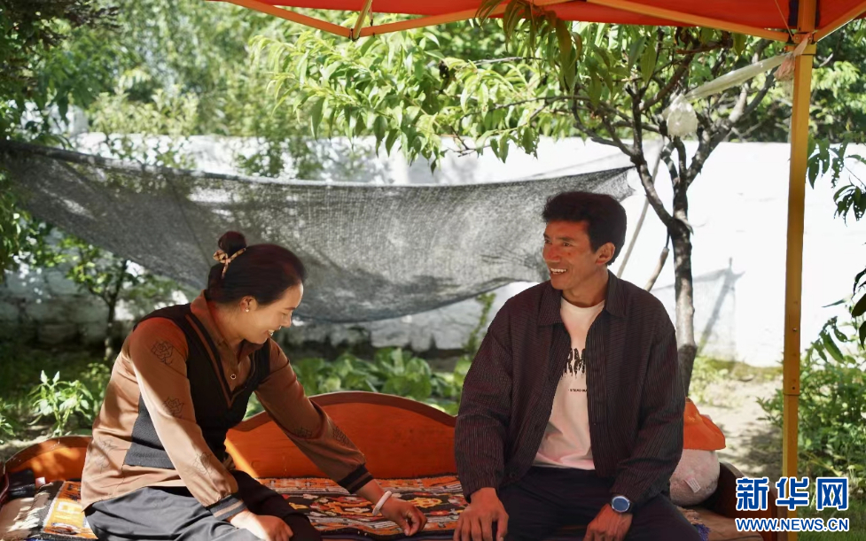 7月23日,達瓦堅參和妻子在自家院子里 。新華網(wǎng)發(fā) 旦增晉扎 攝
