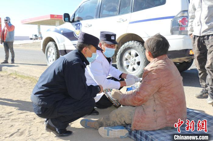 圖為民警救治受傷民眾。西藏出入境邊防檢查總站阿里邊境管理支隊(duì)供圖