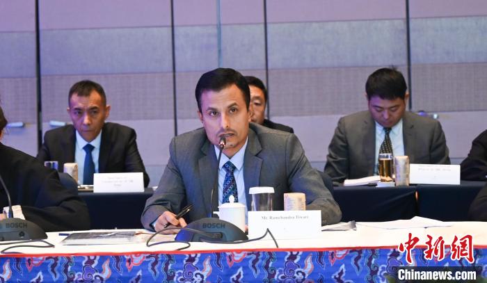 圖為尼方代表團(tuán)團(tuán)長(zhǎng)、尼泊爾工業(yè)、商業(yè)和供應(yīng)部聯(lián)秘拉姆贊德拉·迪瓦日致辭。趙朗 攝