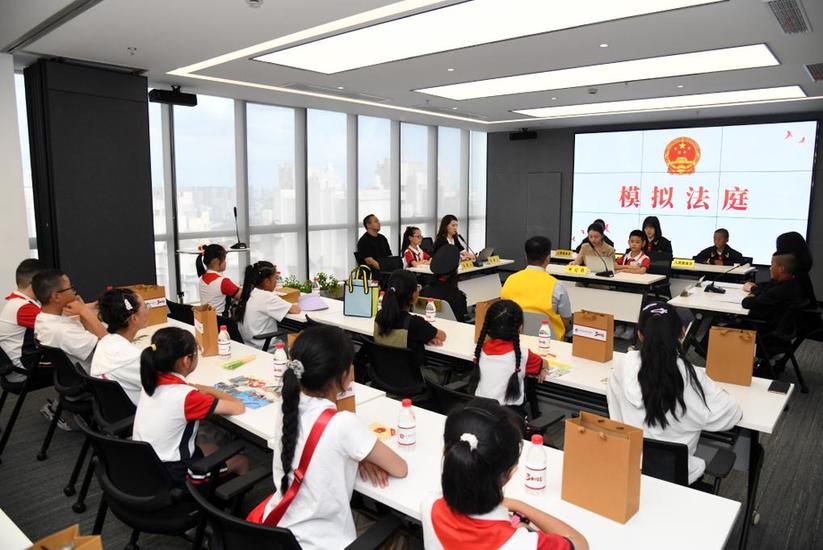 此次行程中,兩地學(xué)生沉浸式體驗(yàn)了一起“模擬法庭”庭審。他們穿上法官袍、檢察制服、律師袍、法警服,分別化身為小法官、小檢察官、小書記員、小辯護(hù)人,隨著清脆的法槌聲響起,“模擬庭審”有板有眼地依序進(jìn)行。三年級(jí)西藏學(xué)生旦增拉吉說(shuō),看完庭審,我懂得了學(xué)習(xí)法律知識(shí)的重要性,感受到司法的神圣和威嚴(yán)。
