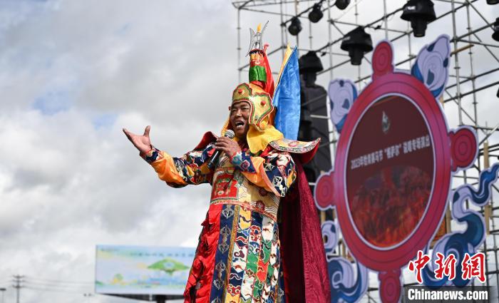 圖為嘎桑頓珠登臺表演。趙朗 攝