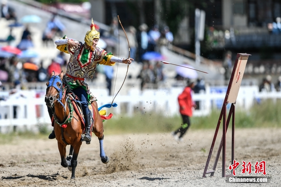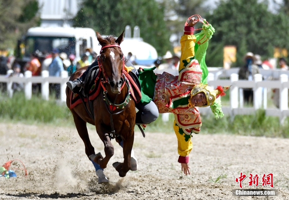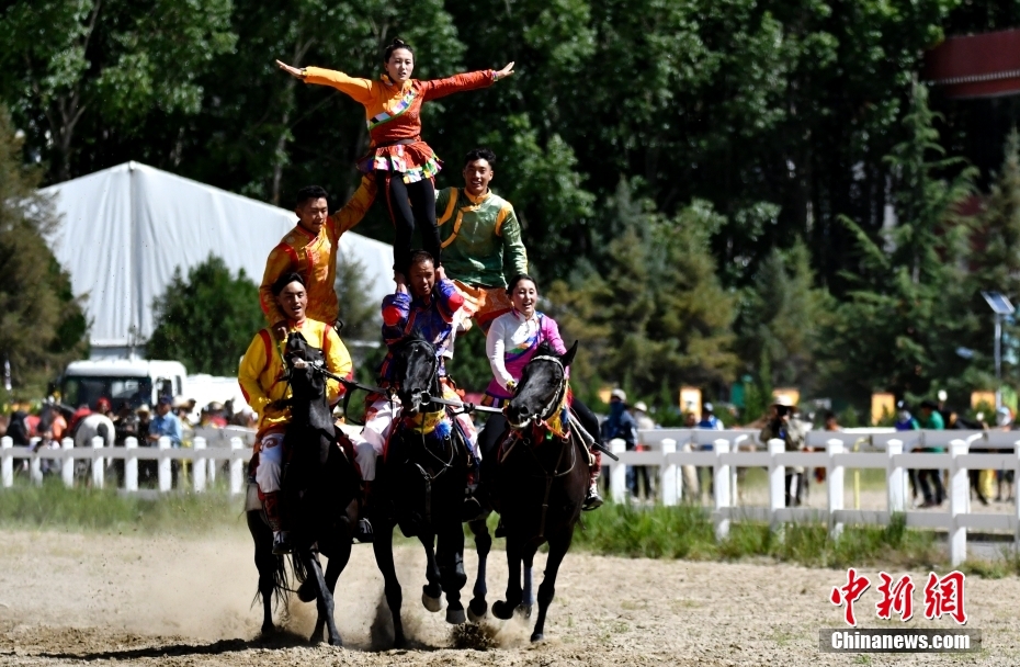 8月17日,騎手們進(jìn)行馬術(shù)表演。當(dāng)日,2023年拉薩雪頓節(jié)民族傳統(tǒng)馬術(shù)表演在西藏拉薩市北郊賽馬場(chǎng)舉行。