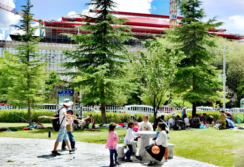 雪頓節(jié)期間,西藏各個景點游人如織、熱鬧非常。拉薩市民準(zhǔn)備好毯子和小吃,到羅布林卡“過林卡”。園林內(nèi),既有小橋流水,也有恢弘建筑,雪頓節(jié)期間更有持續(xù)不斷的藏戲表演。