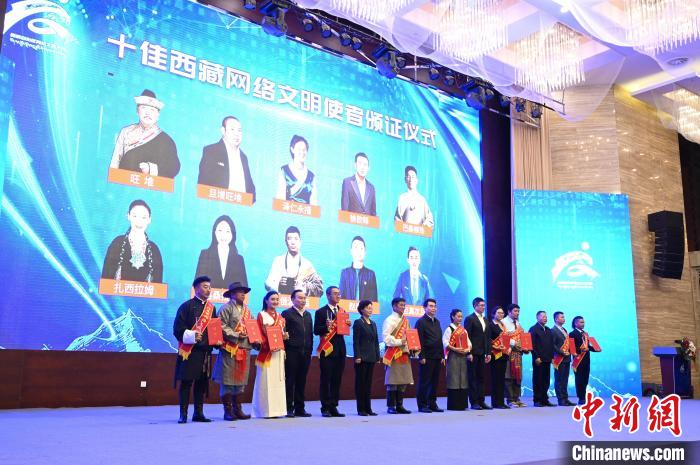 圖為活動表彰了“十佳西藏網(wǎng)絡文明使者”。趙朗攝