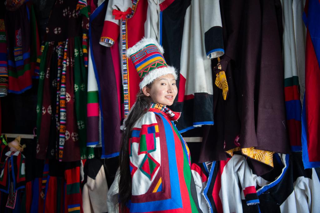 即將奔赴千里之外,邊巴瓊吉并沒有忘記從小陪伴在她身邊的森郭服飾。穿上父親親手制作的森郭服飾,她心情激動(dòng):“森郭服飾有著深厚的底蘊(yùn),我會(huì)帶一套到學(xué)校。用森郭服飾來(lái)介紹我的家鄉(xiāng)時(shí),我將感到無(wú)比驕傲和自豪。五彩的森郭服飾,未來(lái)會(huì)更鮮艷?!?/p>