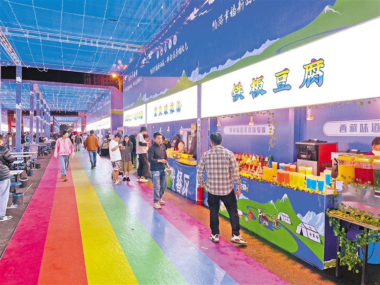 街頭流光溢彩,美食飄香;表演精彩紛呈,燃動(dòng)拉薩。市民和游客在這場(chǎng)美食盛宴中共享美食、品味幸福。