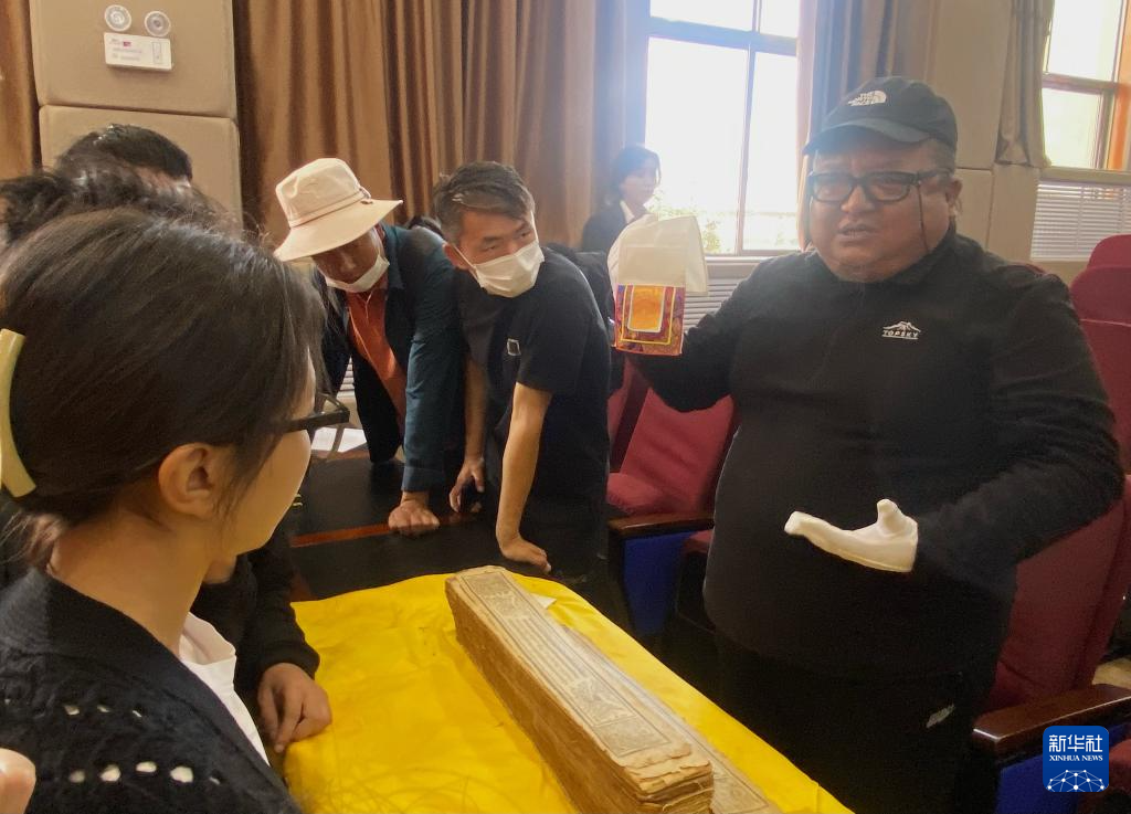 西藏自治區(qū)古籍保護(hù)中心專家與現(xiàn)場與會專家互動分享古籍文獻(xiàn)知識。新華社記者 春拉 攝