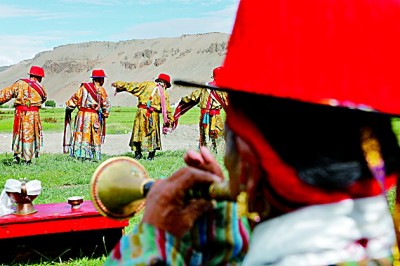 普蘭縣赤德村村民正在表演“仲”舞。光明日報記者 李曾骙攝