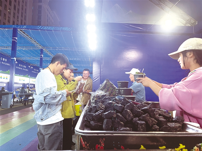 圖為西藏味道美食體驗(yàn)周活動中,市民、游客在選購美食。記者 李梅英 攝