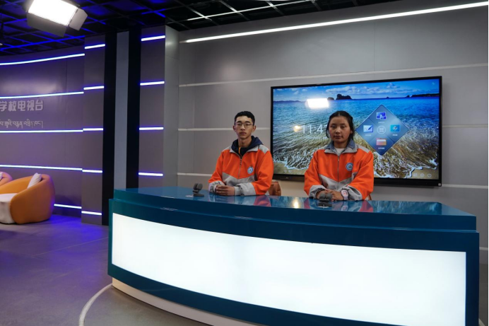 圖為學(xué)校電視臺擔(dān)任播音主持人的卡索旺堆(左)和索日吉(右)