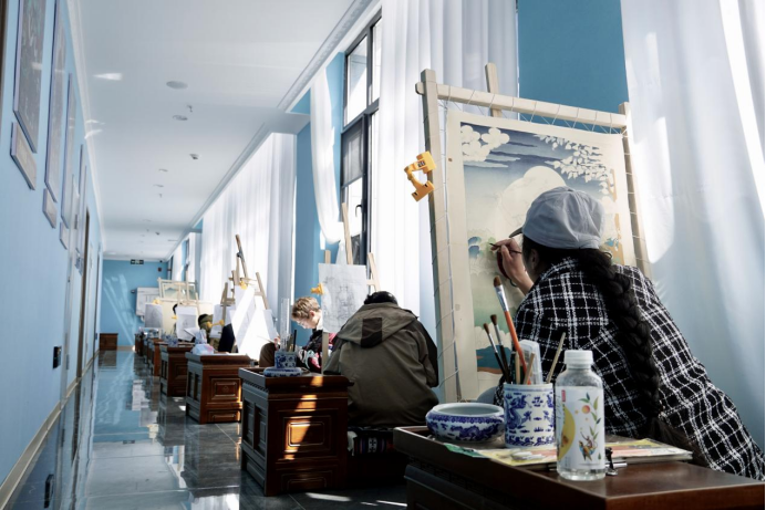 圖為綜合實(shí)訓(xùn)樓內(nèi)唐卡學(xué)習(xí)場所