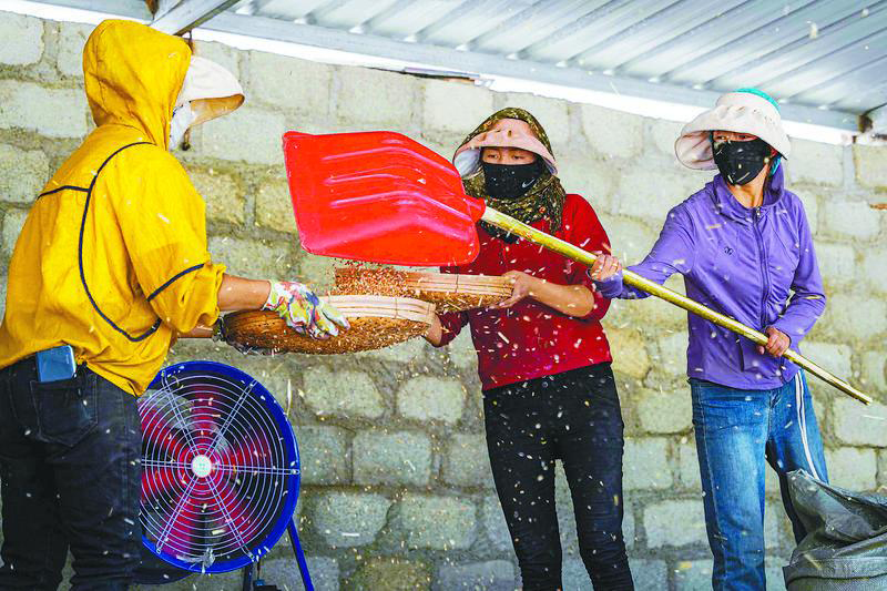 村民們在揚場。 記者 阿旺尼瑪 攝