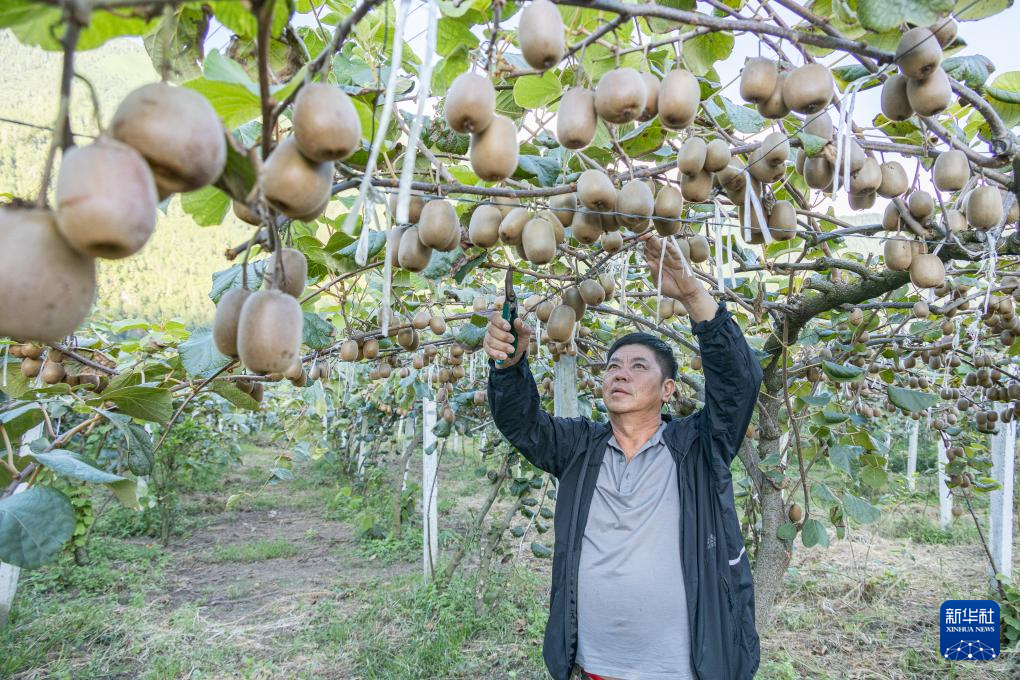 白松在西藏察隅縣下察隅鎮(zhèn)修理獼猴桃枝葉(9月3日攝)。新華社發(fā)(丁增尼達 攝)