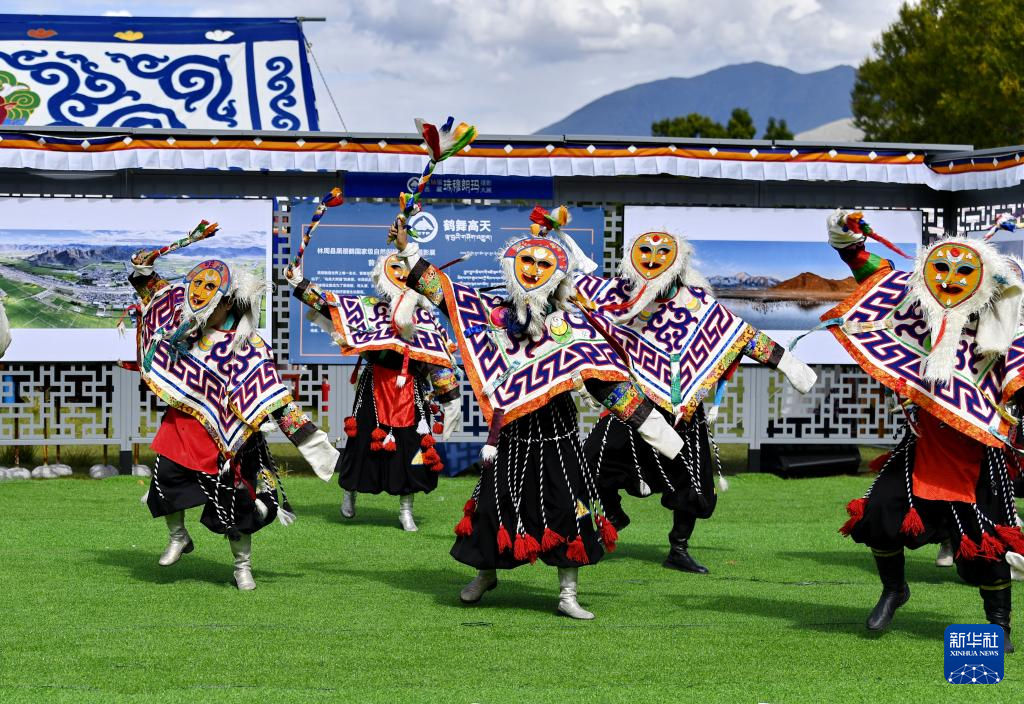 在拉薩市林周縣邊交林鄉(xiāng)當(dāng)杰村,演員在第十六屆西藏珠穆朗瑪攝影大展開(kāi)幕式上表演節(jié)目(9月8日攝)。新華社記者 張汝鋒 攝