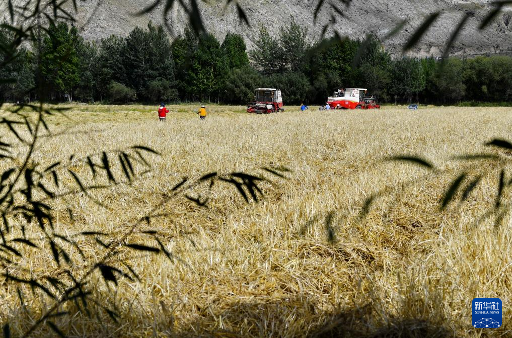 近日,西藏拉薩市曲水縣青稞成熟,人們忙著收割青稞,感受豐收的喜悅。