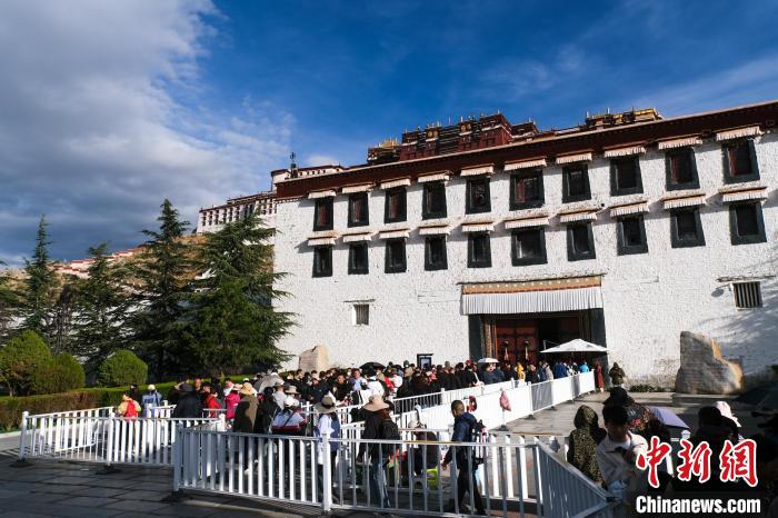 圖為9月30日上午,游客排隊進入布達(dá)拉宮參觀。江飛波 攝