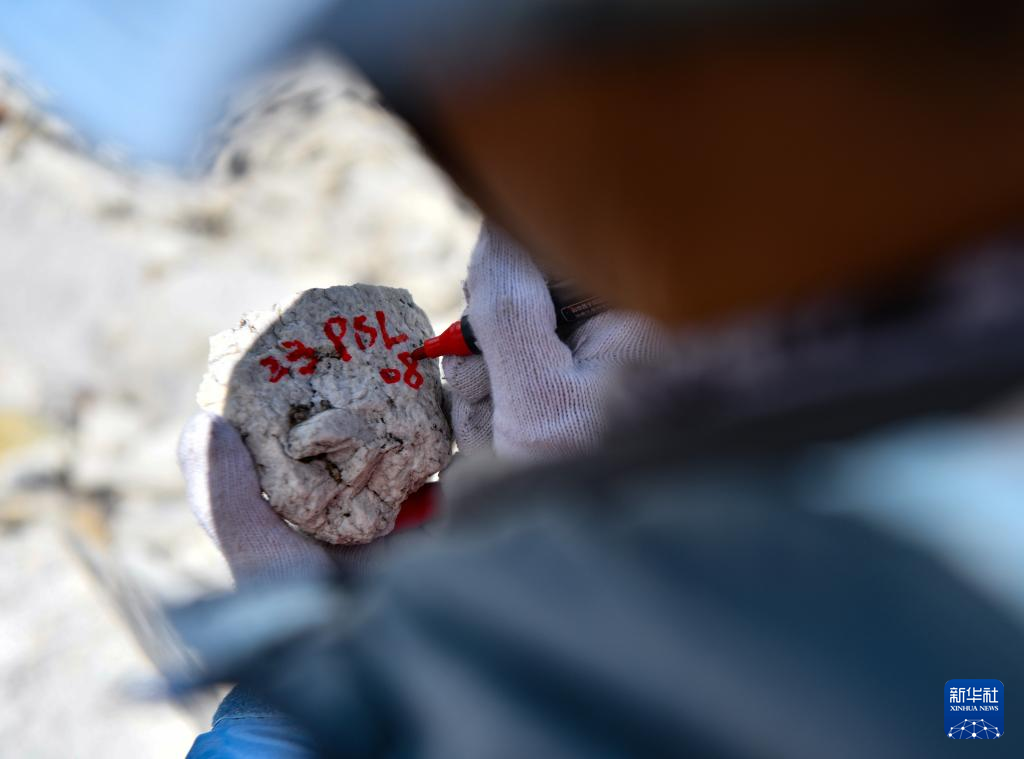 科考隊(duì)隊(duì)員在登記巖石樣本的信息(9月27日攝)。新華社記者 晉美多吉 攝