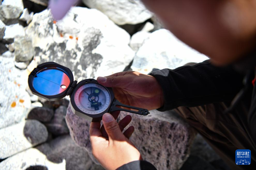 科考隊(duì)隊(duì)員劉小馳在查看巖石樣本(9月27日攝)。新華社記者 晉美多吉 攝