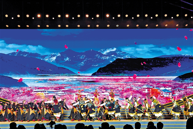 西藏自治區(qū)歌舞團(tuán)、林芝市民族藝術(shù)團(tuán)表演的開場歌舞《扎西德勒》。記者 洛?!z