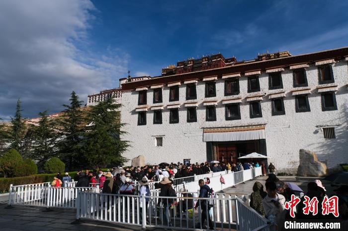 圖為“雙節(jié)”期間,游客排隊(duì)進(jìn)入布達(dá)拉宮參觀。江飛波 攝