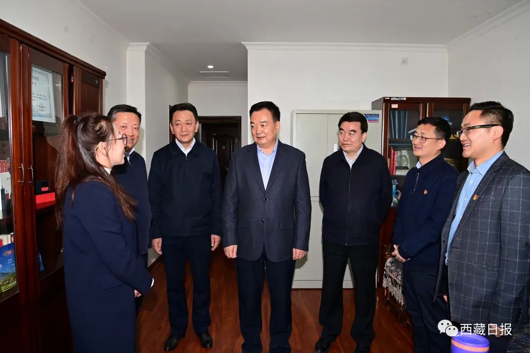 2023年5月,自治區(qū)黨委書記王君正來到自治區(qū)宣傳文化系統(tǒng)調(diào)研。這是王君正看望慰問干部職工。記者 旦增西旦 攝