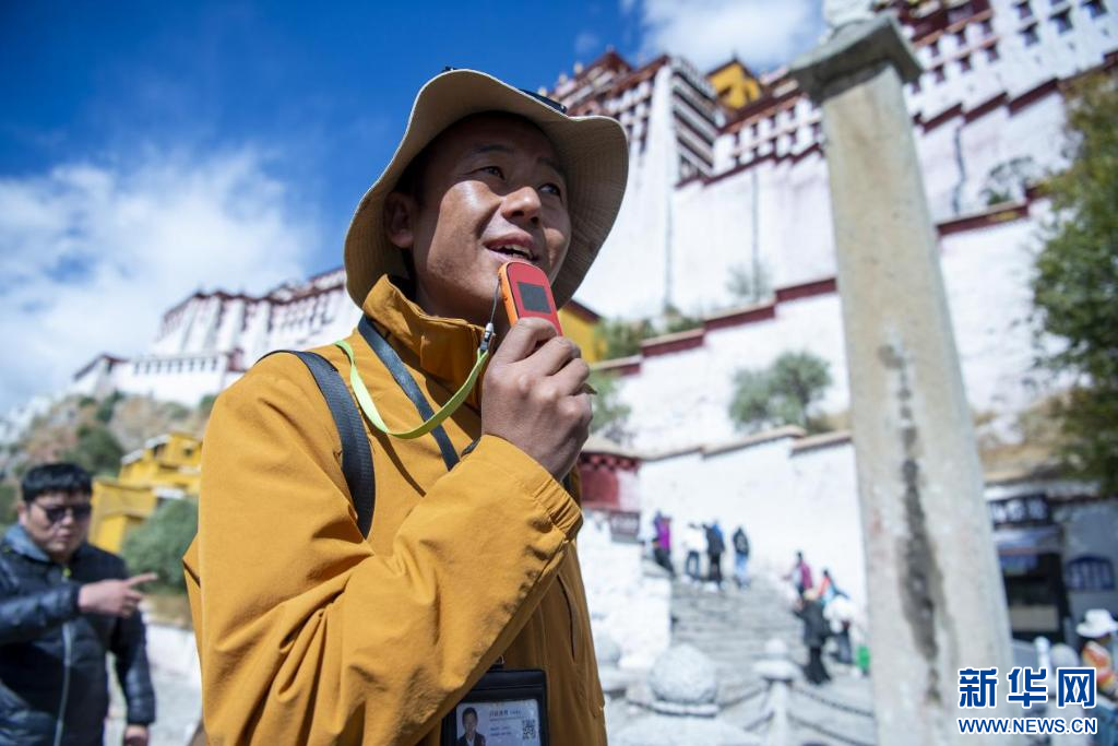 10月18日,一名導游在向游客講解布達拉宮歷史。新華網 旦增努布 攝