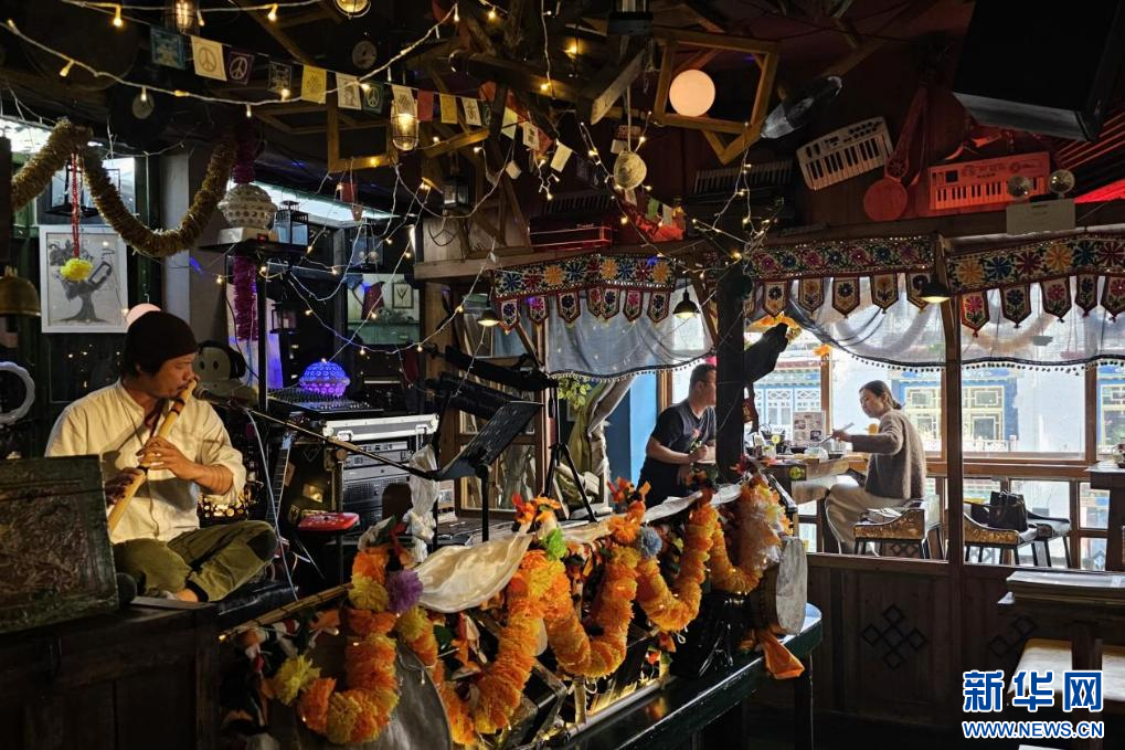10月19日,游客在拉薩古城區(qū)的一家餐廳。新華網 柑丹鴦琦 攝