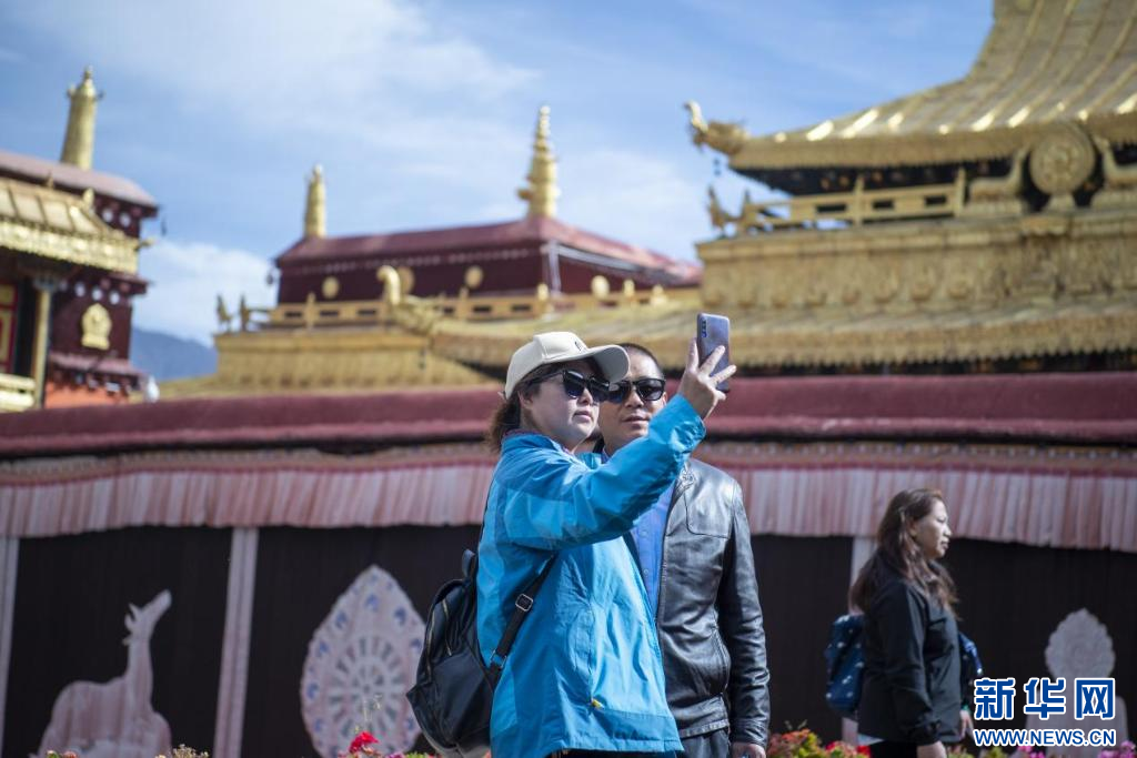 10月18日,游客在大昭寺合影留念。新華網 司秦菱 攝