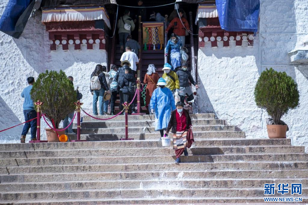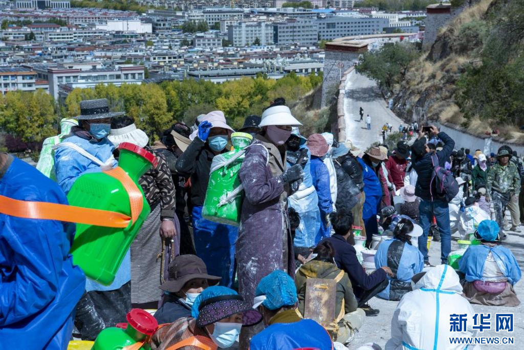 10月18日,布達(dá)拉宮“美容師”們?cè)趪姙⑼鈮?。新華網(wǎng) 旦增努布 攝