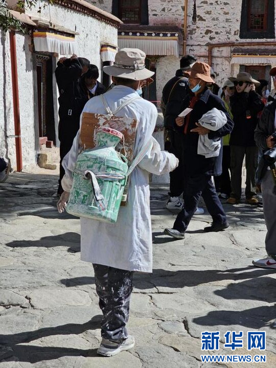 10月18日開始,布達(dá)拉宮進(jìn)入了一年一度的“粉刷季”,數(shù)百名群眾自發(fā)來(lái)到布達(dá)拉宮參與到“美容”工作中。這些“美容師”們腰間系著長(zhǎng)繩,像“蜘蛛人”一樣將自己懸在半空,用人工噴灑的方式涂裝布達(dá)拉宮的外墻。