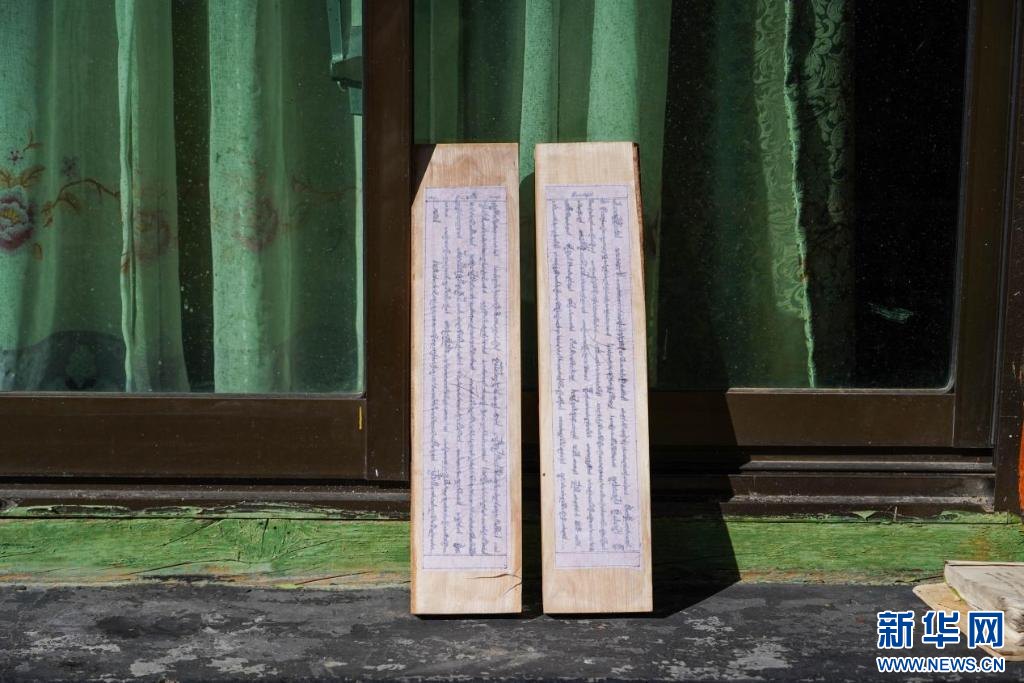 圖為嘎瑪曲扎正在挑選雕刻所用木板(10月21日攝)。新華網(wǎng)發(fā) 司秦菱 攝
