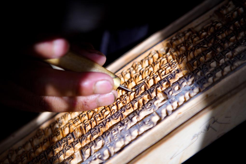 2008年,“波羅古澤刻版制作技藝”被列入國家級非物質(zhì)文化遺產(chǎn)名錄。今年60歲的澤培,從12歲開始學習這門古老的技藝,是家中第九代傳承人。據(jù)澤培介紹,波羅鄉(xiāng)的刻版制作距今已有數(shù)百年歷史。波羅鄉(xiāng)是西藏較早開始雕版印刷的地區(qū),主要產(chǎn)地外沖村被譽為“木刻古村”。